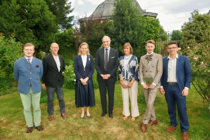 Le président d'honneur, S. A. R. le Prince Lorenz de Belgique est entouré (de gauche à droite) de monsieur Jean-Baptiste Van Ex, administrateur, monsieur Patrick Bribosia, la comtesse Maximilien de Limburg Stirum, présidente, madame Françoise Houssa, monsieur Luca De la Pagerie et monsieur Arnaud Fagard;